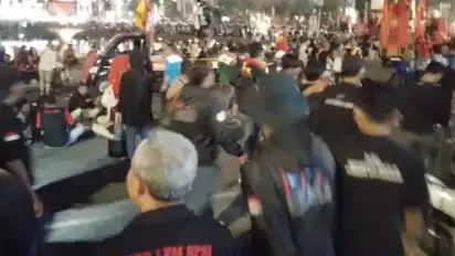 Jakarta, tvOnenews.com - Massa demo di kawasan Patung Kuda, Jakarta Pusat, masih bertahan malam ini. Demo memanas, massa mencoba menerobos barikade dengan menarik kawat berduri.