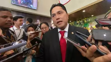 Menteri BUMN yang juga menjabat Ketua Umum PSSI Erick Thohir di Kompleks Parlemen, Jakarta Pusat, Rabu (16/8/2023). Sumber: tvOnenews/Syifa Aulia.