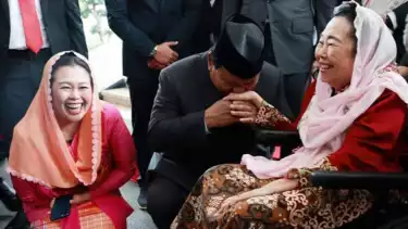 Pada momen itu, Prabowo sempat berjongkok di samping Sinta Nuriyah dan mencium tangan Istri Gus Dur itu. Tak lama, Prabowo dan Yenny sambil berbincang mengantarkan Sinta untuk masuk ke mobilnya.