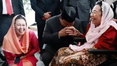 Momen itu berlangsung saat Prabowo mengantarkan Sinta Nuriyah yang ditemani putrinya Zannuba Ariffah Chafsoh atau Yenny Wahid ke mobil mereka di pelataran Gedung Nusantara.