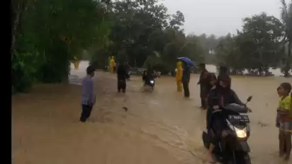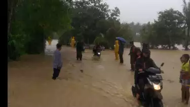 Kab. Sukabumi, Jawa Barat - Badan Penanggulangan Bencana Daerah (BPBD) Kabupaten Sukabumi, mencatat ada 6 titik banjir di Kecamatan Ciemas, yang mengepung kawasan geopark Ciletuh - Palabuhanratu, Jumat (19/11/2021).