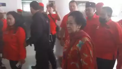 Kedatangan Megawati disambut tembang dan gamelan Jawa. Ia juga tampak menyapa para niyaga maupun sinden.