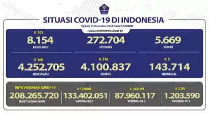 Secara nasional, jumlah kasus aktif turun sebanyak 161 kasus menjadi 8.154 kasus aktif.