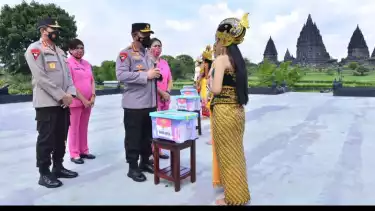 Selain memberi bantuan, mantan Kapolda Banten ini juga menyempatkan berbincang dengan salah satu penari. Sigit menanyakan kondisi sektor kesenian dan kebudayaan di Candi Prambanan saat pandemi Covid-19.