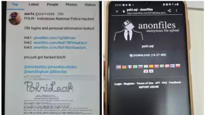 Dari penelusuran ANTARA, Kamis (18/11), akun Twitter @son1x666 menuliskan unggahan "Polri- Indonesian National Police Hacked" 28k logins and personal information leaked".