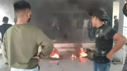 Tak puas dengan orasi dan pembakaran ban, massa kemudian menyeruduk dan menerobos masuk di gedung tersebut. Mereka juga memeriksa setiap ruangan dan memastikan bahwa Kadis yang dimaksud benar-benar tak ada di kantornya.