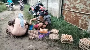 Disana, warga rela mengantre untuk bisa mendapatkan telur ayam murah dengan kondisi cangkang yang sudah retak.