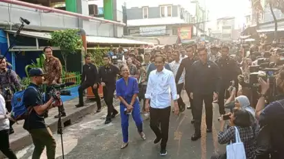 Para pedagang dan masyarakat tampak antusias menyapa Jokowi.