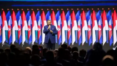 Pantauan tvOnenews.com di lokasi, momen SBY menyanyi itu disambut riuh kader Demokrat dan elite parpol anggota Koalisi Indonesia Maju (KIM) atau koalisi pendukung Prabowo.