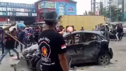 Akibat peristiwa bentrokan itu, sebuah mobil Honda Brio nopol S 1724 BB rusak parah dan beberapa orang mengalami luka-luka.