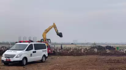 Setelah dua mobil ambulans meninggalkan TPU, dua mobil ambulans lainnya datang untuk memakamkan jenazah.