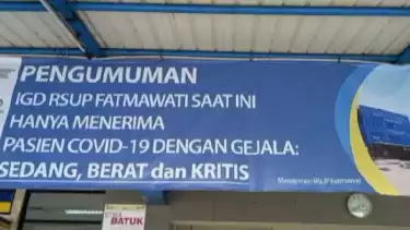 Jakarta - Lonjakan pasien positif Covid-19 terjadi di Rumah Sakit Umum Pusat (RSUP) Fatmawati, Jakarta Selatan (Jaksel). Bahkan tingkat keterisian tempat tidur di rumah sakit pelat merah itu sudah melebihi kapasitas pada Kamis (24/6). Akibatnya, ruang Instalasi Gawat Darurat (IGD) RSUP Fatmawati tidak menerima pasien non-Covid-19.