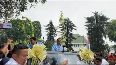 Jakarta, tvOnenews.com - Bakal capres-cawapres Koalisi Indonesia Maju (KIM) Prabowo Subianto dan Gibran Rakabuming Raka tiba di Taman Suropati pukul 10.54 WIB dari Indonesia Arena, GBK.