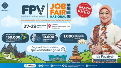 Jakarta, tvonenews.com - Kementerian Ketenagakerjaan kembali menghadirkan Job Fair Nasional dan Festival Pelatihan Vokasi 2023 di JIExpo Kemayoran, Jakarta, pada tanggal 27 sampai dengan 29 Oktober 2023.
