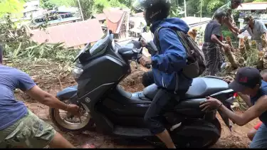 Sementara pengguna jalan yang nekat melintas menggunakan sepeda motor harus ekstra hati-hati. Karena selain sulit dilalui, jalan tersebut juga masih rawan terjadi longsor susulan dan pohon tumbang.