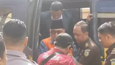 Kenakan Rompi Tahanan Panji Gumilang Tiba di Pengadilan Negeri Indramayu dengan Pengawalan Ketat