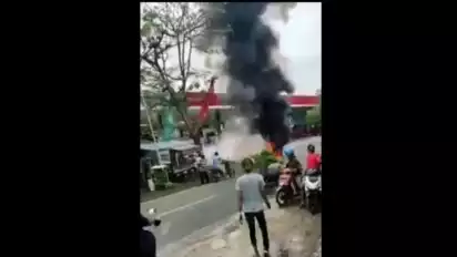 Kebakaran motor tua di pelataran SPBU itu terekam warga di sekitar lokasi. Sebelum terbakar, korban sempat terjatuh dari motornya, ketika hendak meninggalkan SPBU.
