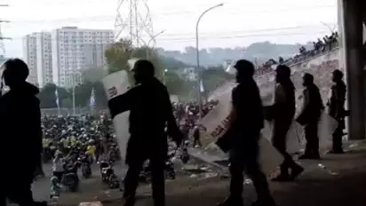 Pihak kepolisian pun terpaksa melepas tembakan gas air mata untuk mengendalikan massa.