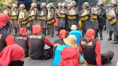 Pantauan tim tvonenews.com, para buruh tersebut menunggu berjam jam untuk bertemu dengan PJ Gubernur DKI Jakarta Heru Budi Hartono sambil melakukan orasi.