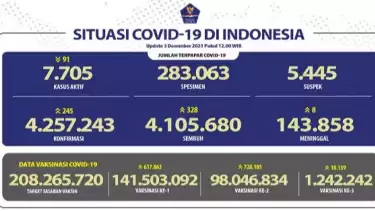 Tercatat, total kasus meninggal harian secara nasional berjumlah delapan jiwa pada hari ini (3/12), sehingga total mencapai 143.858 jiwa.