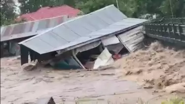 Bahkan beredar di media sosial rekaman video detik-detik rumah warga yang terseret banjir dan hancur menghantam jembatan .