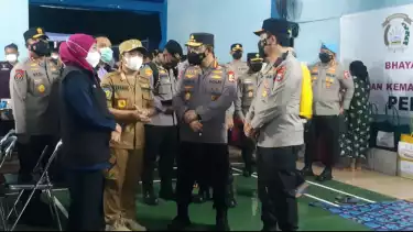 Lumajang, Jawa Timur - Kapolri Jenderal Pol Listyo Sigit P mengunjungi posko pengungsian di Aula Dwijaraharja Candipuro, Senin (6/12) sore.