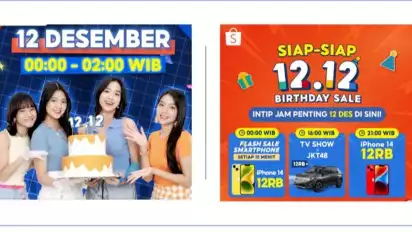Mulai dari Flash Sale Exclusive di Shopee Live, Midnight Sale, TV Show, hingga Late Night Sale, semuanya tersaji di puncak Shopee 12.12 Birthday Sale pada 12 Desember 2023.