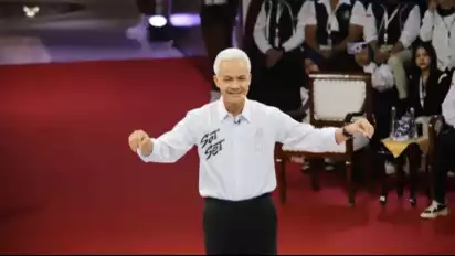 Dalam debat tersebut, Ganjar mengenakan sepatu sneaker bertuliskan "Sat Set".
