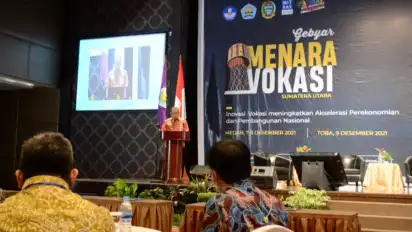 Medan, Sumatera Utara - Direktorat Jenderal Pendidikan Vokasi Kementerian Pendidikan Kebudayaan, Riset dan Teknologi sukses menghelat Gebyar Menara Vokasi Tahun 2021 yang digelar serentak di lima wilayah, yaitu Medan, Pekanbaru, Banjarmasin, Labuan Bajo dan Kolaka.