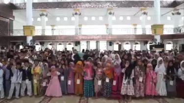 "Di Masjid Agung Haji Achmad Bakrie ini diadakan nonton bareng anak-anak yatim piatu yang sebelumnya diadakan pembacaan ayat suci Al Quran oleh santri tahfiz, selanjutnya ditutup dengan pemberiaj santunan dan bingkisan bagi anak anak yatim piatu dan dhuafa,” lanjutnya.