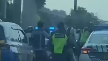 "Seru!!! Kejar-kejaran polisi dengan pengendara sepeda motor di jalan tol," tulis deskripsi pada video yang diunggah tersebut dikutip pada Rabu (20/12/2023).