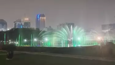 Untuk pertunjukan air mancur menari sesi pertama dimulai pada pukul 19.30-20.00 WIB yang diiringi lagu nasional dan lagu daerah. Air mancur meliuk-liuk, ke udara lalu berbentuk kipas.