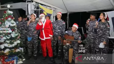 Jakarta, tvOnenews.com - Prajurit TNI Angkatan Laut yang tergabung dalam pasukan perdamaian Perserikatan Bangsa-Bangsa (PBB) di Lebanon (UNIFIL) merayakan Natal bersama warga negara Indonesia di Beirut dan diaspora Indonesia di atas geladak KRI Frans Kaisiepo-368.