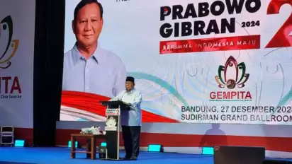Bandung, tvOnenews.com - Calon Presiden (Capres) nomor urut 02, Prabowo Subianto menghadiri deklarasi Gerakan Muslim Persatuan Indonesia Cinta Tanah Air (Gempita) di Bandung, Jawa Barat, Rabu (27/12/2023).