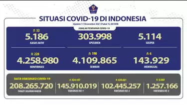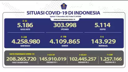 Update Covid-19 Sabtu 11 Desember 2021: Pasien Bertambah 228 Orang Kasus Terbanyak di Jawa Barat