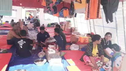 Lumajang, Jawa Timur - Para pengungsi yang terdampak erupsi gunung semeru di lapangan penanggal, kini mulai merasakan kejenuhan meski kebutuhan logistik mampu mencukupi kebutuhan para pengungsi hingga satu bulan kedepan. Bahkan untuk tenaga kesehatan juga kerap mengontrol kesehatan para pengungsi secara rutin.