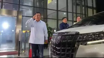 Sekitar pukul 19.34 WIB, giliran capres-cawapres nomor urut 2, Prabowo Subianto dan Gibran Rakabuming Raka yang tiba di Gedung Merah Putih KPK. Keduanya tampak kompak mengenakan kemeja berwarna biru langit atau biru muda yang menjadi ciri mereka. (mhs/ebs)
