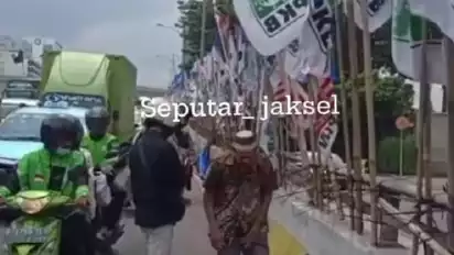 Bendera partai timpa kakek nenek di flyover Kuningan
