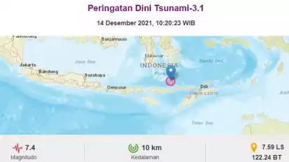Dikutip dari situs BMKG, Gempa magnitudo 7,4 mengguncang wilayah Larantuka NTT sekitar pukul 10:20:23 WIB, pada Selasa (14/12/2021) dan berpotensi tsunami