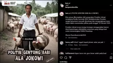 Bahkan, dalam foto tersebut bertuliskan 'Politik Gentong Babi ala Jokowi.'