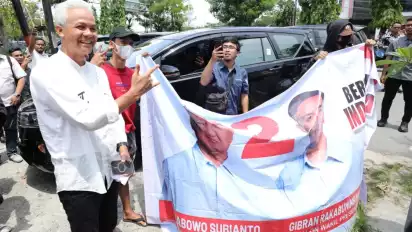 Melihat hal itu, eks Gubernur Jawa Tengah itu kemudian menghampiri mereka. Ketika didatangi Ganjar, dua orang laki-laki itu sempat terlihat malu dan menutup spanduk tersebut, tapi Ganjar mencegahnya.