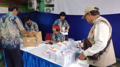 Berdasarkan pantauan, tampak Ketua Kelompok Penyelenggara Pemungutan Suara (KPPS) TPS 008, Nur Ikhsan, bersama dengan enam anggota KPPS masih menyusun kertas suara, pengecekan data, dan mempersiapkan kotak, serta bilik suara.