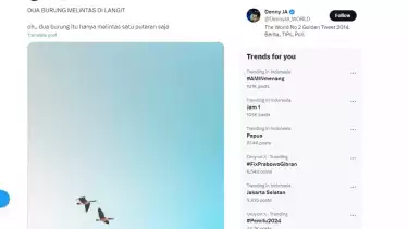 "oh.. dua burung itu hanya melintas satu putaran saja," cuit Denny JA di akun X (twitter), sebagaimana dipantau Rabu (14/2/2024).