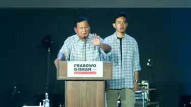 Prabowo Subianto dan Gibran Rakabuming Raka di Istora Senayan, Jakarta. (tvOnenews/Julio Trisaputra)