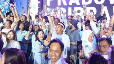 Jakarta, tvOnenews.com - Ribuan pendukung menyambut semarak Capres-Cawapres nomor urut 2, Prabowo-Gibran di Istora Senayan, Jakarta, Rabu (14/2/2024) malam.