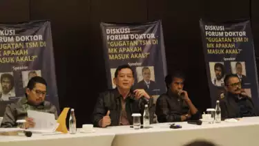 Jakarta, tvonenews.com - Sejumlah pakar hukum duduk bersama untuk membahas isu kekinian dalam acara diskusi Forum Doktor yang digelar di Hotel Fermont, Jakarta, Kamis, 22 Februari 2024.