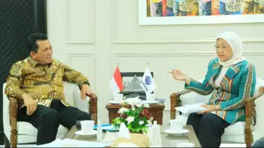 Jakarta, tvonenews.com - Menteri Ketenagakerjaan Ida Fauziyah menerima kunjungan Gubernur Kepri Ansar Ahmad di kantor Kemnaker, Jakarta, Kamis (22/2/2024), menyusul selesainya pembangunan gedung bengkel kerja (Workshop) BLK Karimun, pada Desember 2023 lalu.