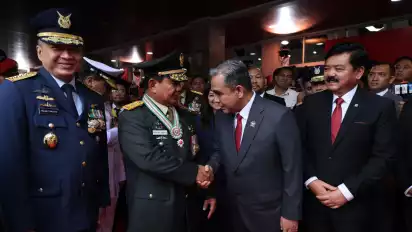 Jakarta, tvonenews.com - Sekjen Partai Gerindra Ahmad Muzani menyampaikan selamat kepada Menteri Pertahanan yang juga Ketua Umum Partai Gerindra, Prabowo Subianto yang hari ini menerima penghargaan istimewa berupa Jenderal Kehormatan dari Presiden Joko Widodo di Mabes TNI, Cilangkap, Jakarta, Rabu (28/2/2024).