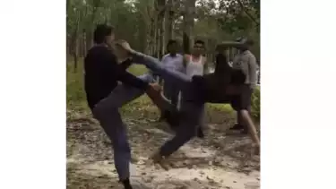 Asahan, Sumatera Utara - Sebuah video yang berdurasi 0.29 detik menunjukkan perkelahian yang cukup brutal antara dua orang pelajar laki laki. Dalam video itu, perkelahian disaksikan oleh belasan teman temannya di sebuah perkebunan karet.