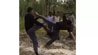 Dalam detik detik terakhir, salah seorang pelajar yang menerima tendangan di mukanya nampak melarikan diri hingga jatuh ke sungai kecil atau parit diperkebunan karet, dan video perkelahian itupun berakhir.